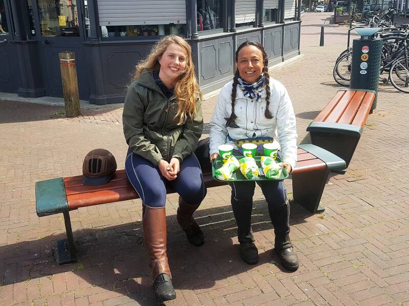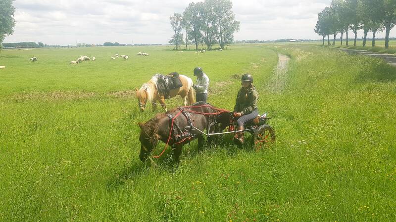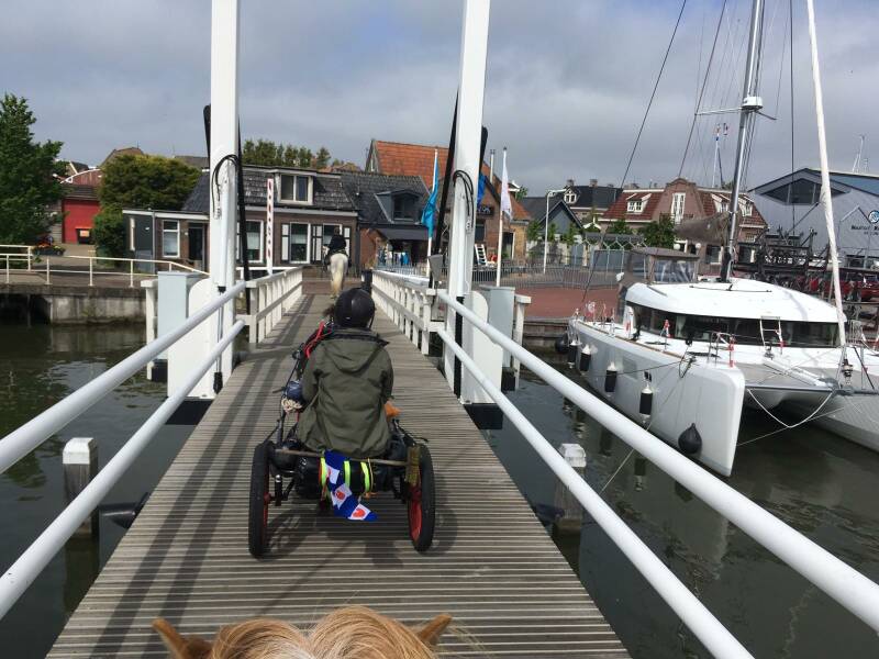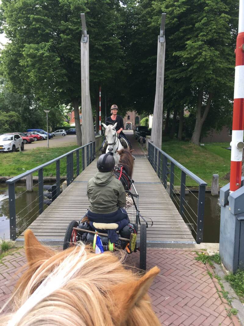 In het najaar van 2018 begint al weer de kriebel op te komen. Aangezien Anouk dit jaar HAVO eindexamen doet maakt dat de planning wat makkelijker om vlak daarna en buiten om de officiële schoolvakanties te gaan. Een volle week rijden zou dit jaar toch weer eens een moeten lukken. Het idee om dan dit jaar de elf steden van Friesland aan te doen kwam van een vriendin van mij, van wie het altijd een grote droom geweest was de Elfstedentocht te paard te doen. Het was er nooit van gekomen en inmiddels heeft ze door lichamelijke klachten helaas moeten stoppen met paardrijden. In de eerste instantie stond ik eerlijk gezegd nog niet echt te juichen bij de gedachte. Ten eerste hadden onze eerdere trektochten toch echt een heel hoog vakantie- en zeer weinig prestatiekarakter. Rustig ontbijten, ontspannen opzadelen en dan om een uur of 11 eens een keer vertrekken, dan een ritje van doorgaans niet meer dan tussen de 15 en 25 km om vervolgens mooi rond een uur of vier met de beentjes omhoog en een drankje in de hand te zitten. Maar dat idee kunnen we natuurlijk met bijna 250 kilometer over de weg in 7 dagen met een gemiddelde van ca. 35 kilometer per dag wel vergeten .Ten tweede is de polder natuurlijk heus wel mooi, maar er zijn ook nog zoveel mooie bos-en heidestukken in Nederland die we nog niet gereden hebben. Ik heb er dus best een paar nachtjes over geslapen. Wat uiteindelijk de doorslag gaf was om het tóch te doen, was dat ik dacht en wilde zien dat de paarden er klaar voor waren om zonder blikken of blozen dwars door drukke gebieden te lopen. Alegro is inmiddels 7 en Bean 5 jaar oud. Beide paarden zijn van nature rustig en cool in het hoofd. Maar net zo min als een jong paard met goede aanleg voor dressuur en de juiste gangen zonder training een Z proef kan lopen, is een van nature rustig paard zonder training natuurlijk nog niet een door en door betrouwbaar buitenrijdpaard. Net zo zeer als het op het hoog niveau dressuur willen starten vraagt het verkrijgen van een bomproof paard tijd, aandacht, inzet, vertrouwen opbouwen, fouten maken, opnieuw beginnen en ontzettend veel kilometers maken. Maar dat hebben we de afgelopen jaren gedaan en een betere manier om dan te kijken wat dat allemaal heeft opgeleverd dan het rijden van de Elfstedentocht leek er natuurlijk niet te zijn. Ook op vriendin Cathelijn moest ik nog even inpraten. Ze had net als ik ook eerst enige aarzeling, maar besloot dan gelukkig de onderneming mee aan te gaan. En dan begint er een enorme tijdrovende klus.. Officieel bestaat de Elfstedentocht te paard ( op dit moment) namelijk niet en het enige wat beschikbaar is op dat gebied is het boekje “Elfstedentocht te paard en koets” (inclusief stempelkaart) van uitgeverij Ridaire. Maar dat bevat enkel een route beschrijving en is in de huidige vorm daarbij ook niet helemaal up to date ( de uitgever reed de tocht zelf in de jaren negentig en sindsdien is er natuurlijk veel veranderd in het wegennet). Het kostte dus veel gepuzzel om de route te bepalen, 7 etappes te plannen die ongeveer gelijk zijn in afstand en daarbij de overnachtingsadressen te zoeken. Ik heb eindeloos iedere mogelijk te rijden weggetje met google earth verkend en me rot gebeld met mijn verzoeken tot overnachten. Hier en daar krijg ik nul op het rekest, maar uiteindelijk vond ik overal en op de juiste locaties slaap/ kampeerplek. Ik heb de tocht gepland met vertrekpunt Sneek en tegen de klok in ( in de schaats-,fiets-, wandel- enz. variant gaan ze altijd met de klok mee). Dit omdat het me leuker lijkt het stuk met de meeste stempelpunten voor het laatste te bewaren en bovendien kunnen we dan (bij vertrek op zaterdag ) zondagmorgen vroeg door Leeuwarden heen. Maar eind maart is alles in kannen en kruiken en dan begint het lange wachten tot we eind mei gaan vertrekken. Nou ben ik altijd in de weken voor vertrek knap zenuwachtig dat er allerlei onvoorziene rampen gaan gebeuren waardoor de hele onderneming op het laatst toch niet doorgaat of halverwege sneuvelt, maar deze keer heb ik er echt bijna slapeloze nachten van. Als er maar niet een van de paarden kreupel wordt, of een snotneus, of koliek. Als mijn collega nou maar niet haar been breekt, want dan kan ik niet weg op mijn werk. Als ik zelf maar niet van de trap val en mijn enkel breek. Wat als ik zulke afstanden eigenlijk helemaal niet volhoud? Ik ben ook de jongste niet meer en zeker niet overdreven sportief aangelegd. Als de ijzers er maar niet halverwege de rit eronderuit vallen. Als we maar niet op een dag dat we 40 km moeten rijden een lekke band krijgen met de sulky. Als er maar geen hittegolf is die week. Enz. enz. enz. Ik word bijna stapelgek van mezelf.
