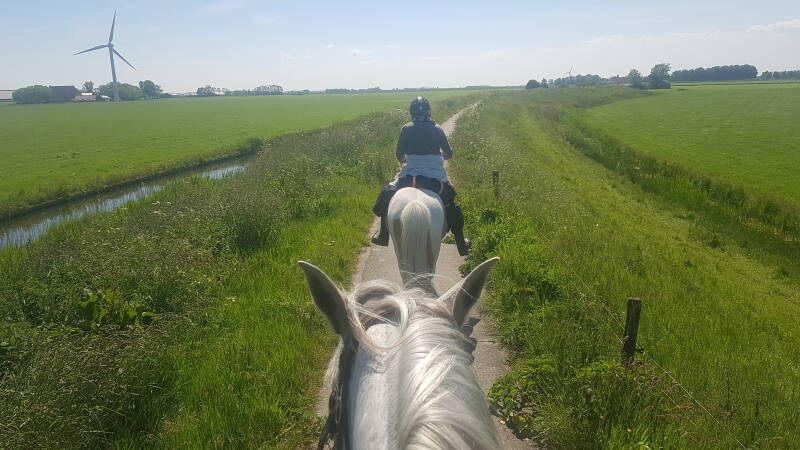 Ook op deze locatie was het aanvankelijk niet makkelijk om een overnachting te vinden. Op goed geluk heb ik in de voorbereiding een camping gebeld waarvan ik op de website zag dat de eigenaar zelf paarden had. In de eerste instantie kreeg ik een vriendelijk maar toch duidelijk nee op mijn ongewone verzoek of hij behalve een paar kampeerders ook bereid zou zijn een paar paarden te huisvesten. Maar nog geen 5 minuten later had hij me al teruggebeld en ging alsnog akkoord. Het toverwoord was ook hier weer Elfstedentocht, dat opent in Friesland deuren die voor anderen gesloten blijven.