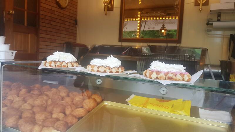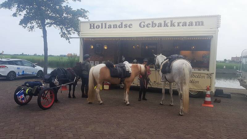 Als we Sloten uitrijden rijden we recht op een Hollandse Gebakkraam af.... Nou zijn eigenlijk al onze hoge verwachtingen die we van te voren over deze tocht hadden stuk voor stuk uitgekomen op ééntje na: dat met al die activiteit de kilo's er wel af zouden vliegen onderweg. Maar niets is helaas minder waar en ook vandaag hebben we weer de ruggengraten van een weekdier.