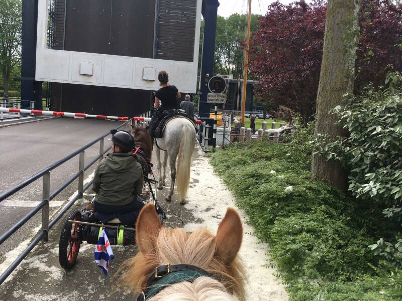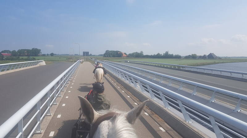 Kort na vertrek bij Bineke komen we trouwens bij een van die knelpunten in de Elfstedentochtroute te paard: het aquaduct van Jeltesloot. Wij kunnen het fietspad nemen maar met een aanspanning zal je hier dan over een 80 kilometerweg moeten en dat is natuurlijk wel een ding.