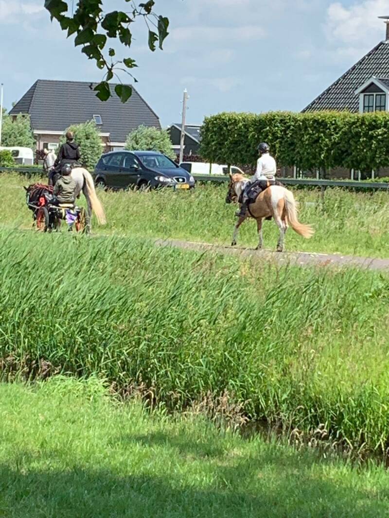 En als we ter plekke zijn wacht ons ook nog eens eerste klas VIP behandeling. Terwijl alle andere campinggasten op een veld bij elkaar staan, staan wij op een ander veld wat op 1 klein kampeerbusje na leeg is en kijken we 10 meter verder uit op onze paarden die zich tevreden vol staan de bunkeren in het lange gras. Een betere laatste avond hadden we ons niet kunnen voorstellen. Want het zit er nu bijna op, maar ondanks alle kilometers hebben we er eigenlijk nog lang geen genoeg van. Morgen nog 1 dag rijden, via Sloten en IJlst terug naar onze trailers in Sneek. Daar gaan we nog met volle teugen van genieten!