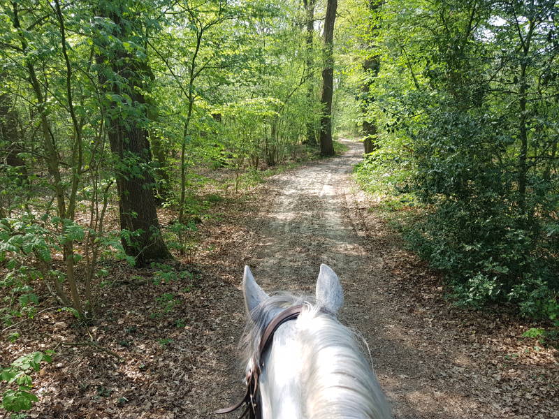 Het stuk over de Gendringseweg is echt volledig ongeschikt om met paarden te rijden . De vrij smalle weg lijkt wel de doorgaande route voor de hele Achterhoek en omstreken te zijn. En er is werkelijk niet één auto, tractor of vrachtwagen die ook maar een halve pas in houdt en/of ons een paar meter extra ruimte geeft Ze razen daarentegen allemaal met een noodvaart langs ons heen. Tot zoverre mijn wollige idee dat de mensen in het oosten van het land relaxter en minder gehaast zijn dan die in het westen. Dat het geen moment echt gevaarlijk wordt is alleen danken aan het feit dat Alegro en Bean absoluut 100 % verkeersmak zijn en Anouk en ik constant anticiperen door bij iedere debiel die we al in de verte zien aankomen stormen tijdig het hele kleine beetje ruimte dat er is te zoeken en daar even stil te staan. Gelukkig bereiken we dus zonder kleerscheuren de afslag die ons weer wegvoert van het circuit van Zandvoort. En daarna wordt de route weer rustig en rijden we nog een leuke rit.