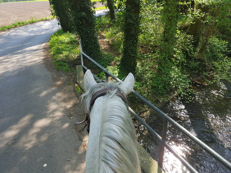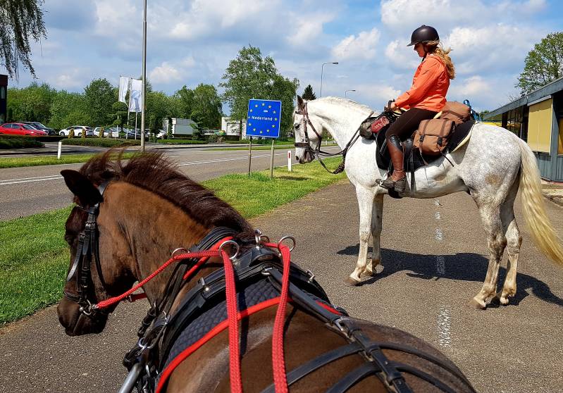 Maar we passeren ook een stukje de Duitse grens en daarmee kunnen we voor het eerst zeggen dat we met de paarden in het buitenland geweest zijn.