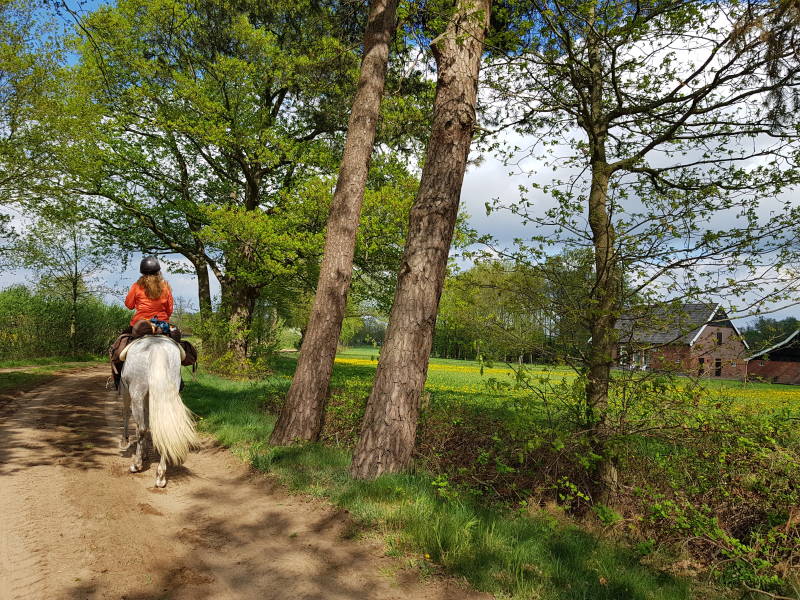 De paarden kunnen hier niet overnachten dus die brengen we daarna door naar de nabijgelegen Aalbrinkshoeve. Het is nog ongeveer 10 minuten rijden, maar de terugtocht met de benenwagen is korter omdat er een (prachtig) wandelpad binnendoor is.
