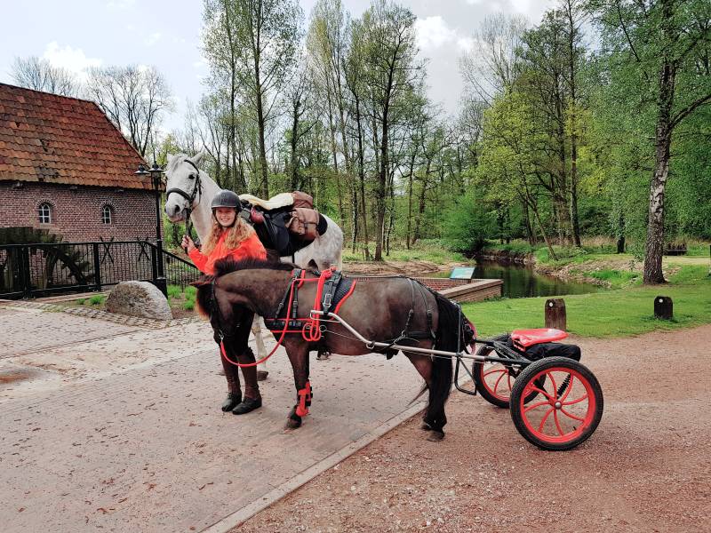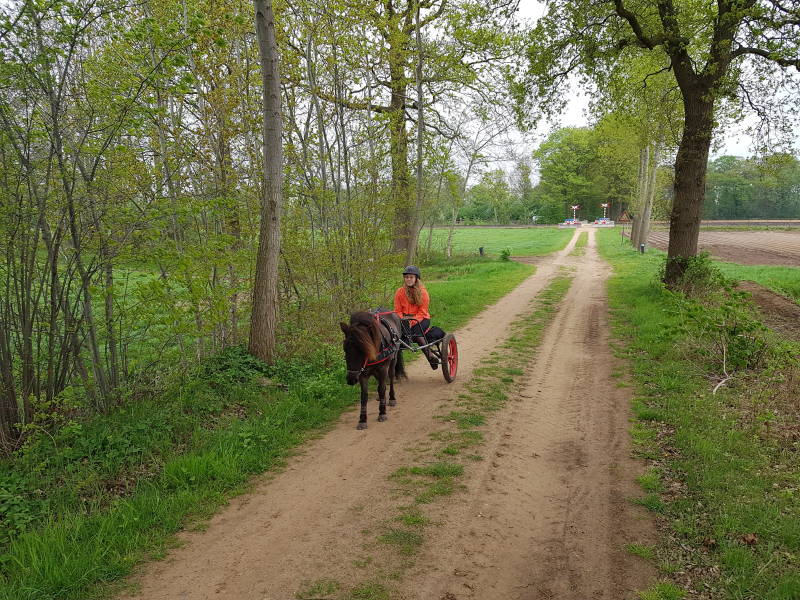 Met Anouk zal ik een paar dagen in de Achterhoek rijden en met Cathelijn in het gebied ten zuidoosten van Nijmegen. De accommodaties om te overnachten zijn in beide streken duidelijk schaarser aanwezig dan op de Veluwe en het vraagt hier en daar wat kunst- en vliegwerk om toch te kunnen overnachten. Ook ruiterpaden zijn er mínder en er zitten meer verharde wegen in de tocht dan tot nu toe gewend, maar met de sulky mee is dat natuurlijk niet persé een nadeel. Daardoor is het wel weer een beetje extra hopen op mooi weer, want erachter zit je bij wind en regen toch echt wel een stuk beroerder dan erop.