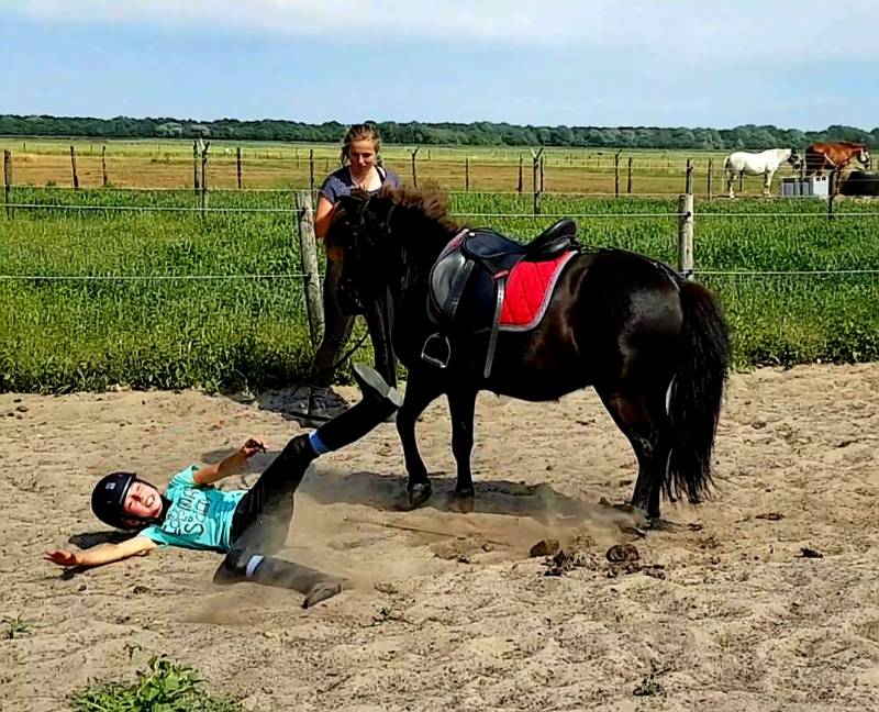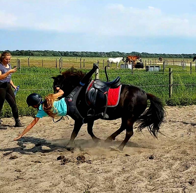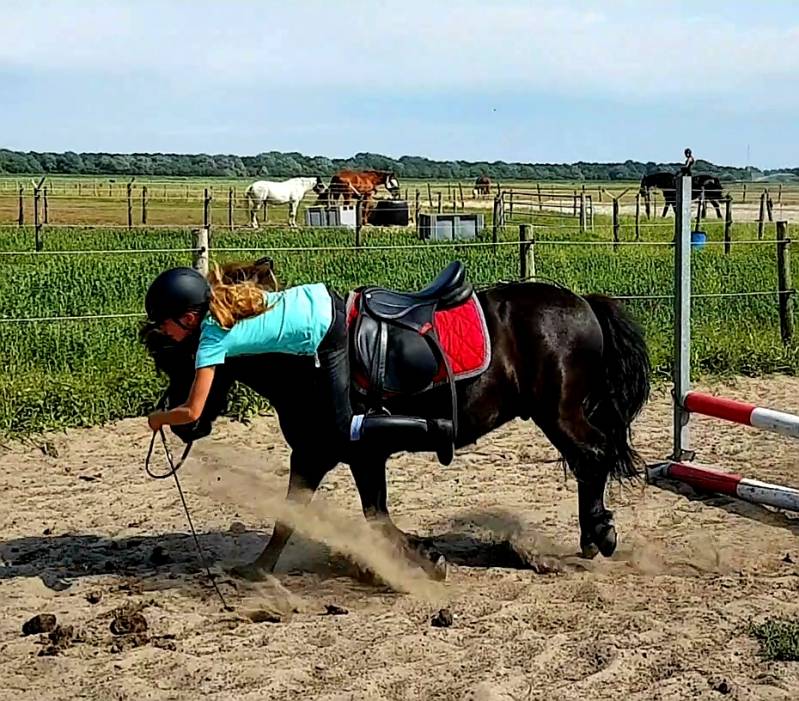P.S. na de door Bean iets te enthousiast genomen sprong kon Lara het toch net niet houden en storte ter aarde. Maar, zoals iedere goede ruiter betaamt, stond ze ook weer gewoon lachend op. Goed paardrijden leer je uiteindelijk (letterlijk en figuurlijk) alleen met vallen en opstaan , in combinatie met een fikse dosis humor. Well done Lara!