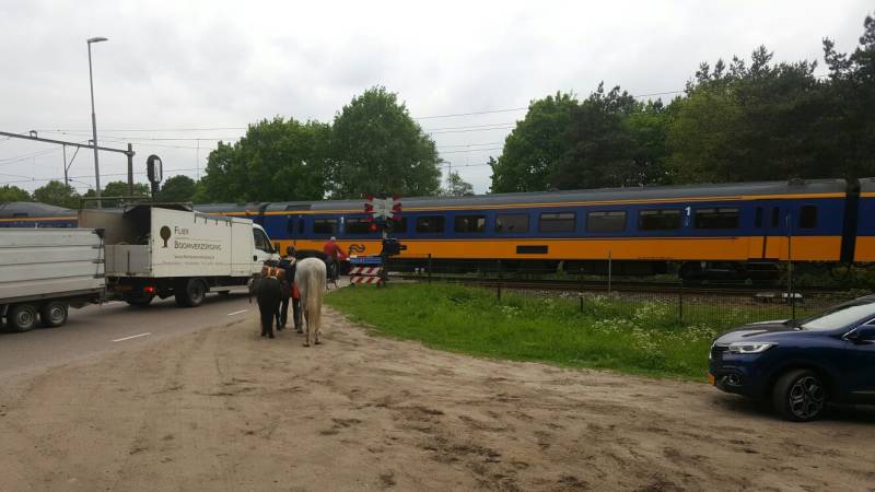 Het laatste stukje moest door het dorp maar daar draaien we na de spoorweg overgangen, viaducten en drukke wegen van deze tocht ons hand niet meer voor om. Uiteindelijk is er maar één ding waar paarden echt mak van worden en dat is gewoon heel veel rijden.