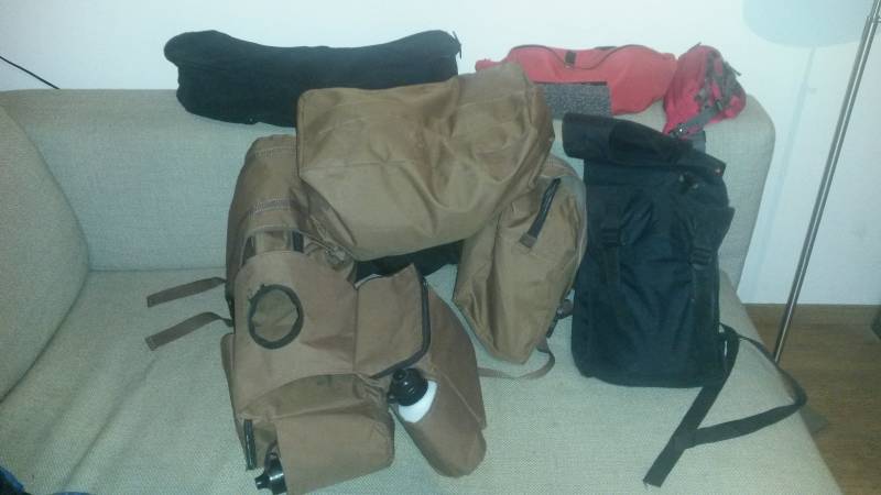 's Ochtends staan we vroeg naast ons bed om tijdig op manege Riant aanwezig te kunnen zijn. Tijdens het pakken van onze spullen kijk ik stomverbaasd naar hoe Tessa mijn opdracht voor de aanschaf van waterdichte plastic fietstassen heeft vertaald door een paar uit de kluiten gewassen boterhammenzakken mee te nemen die volgens haar best dienst kunnen doen...